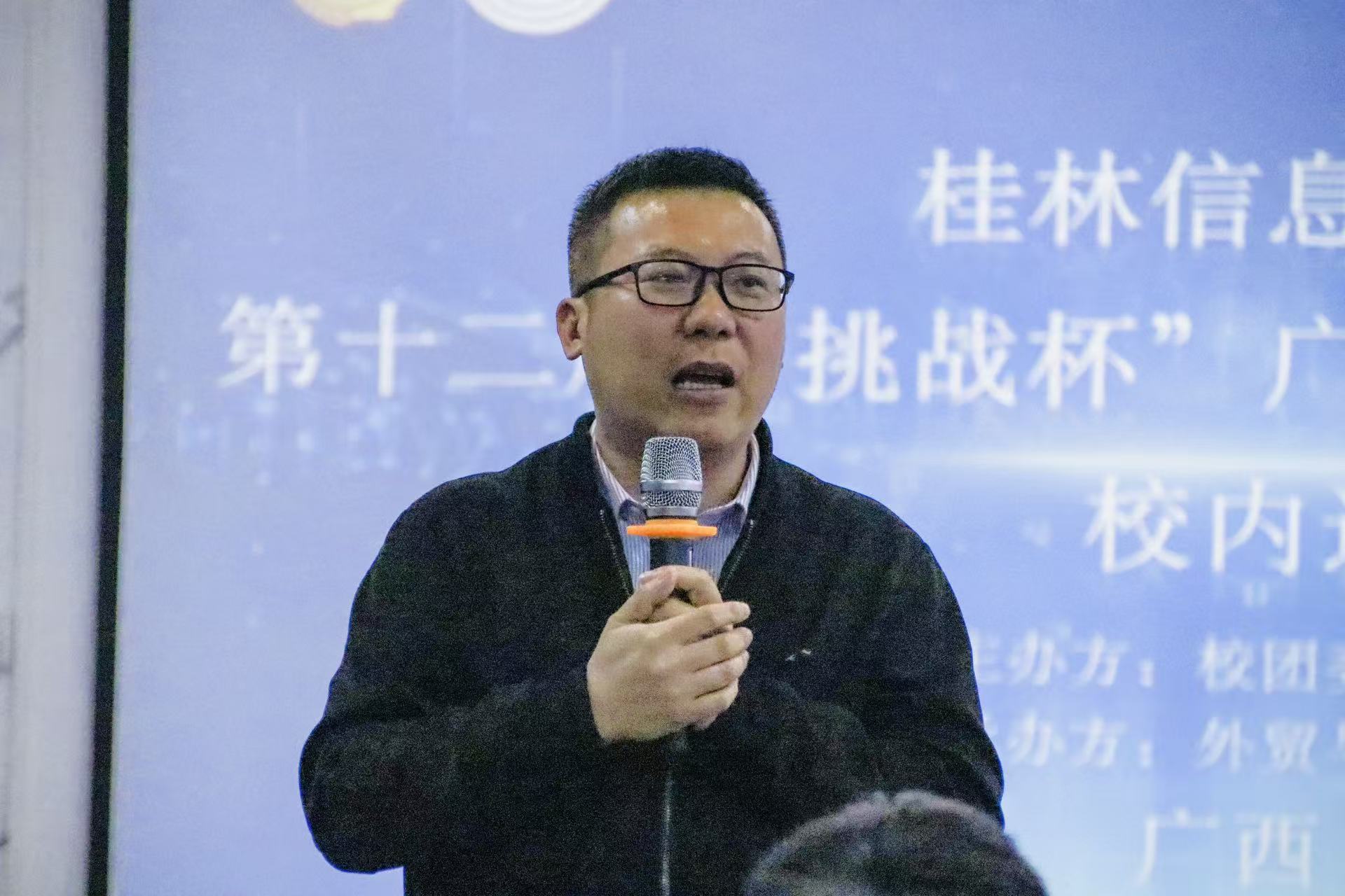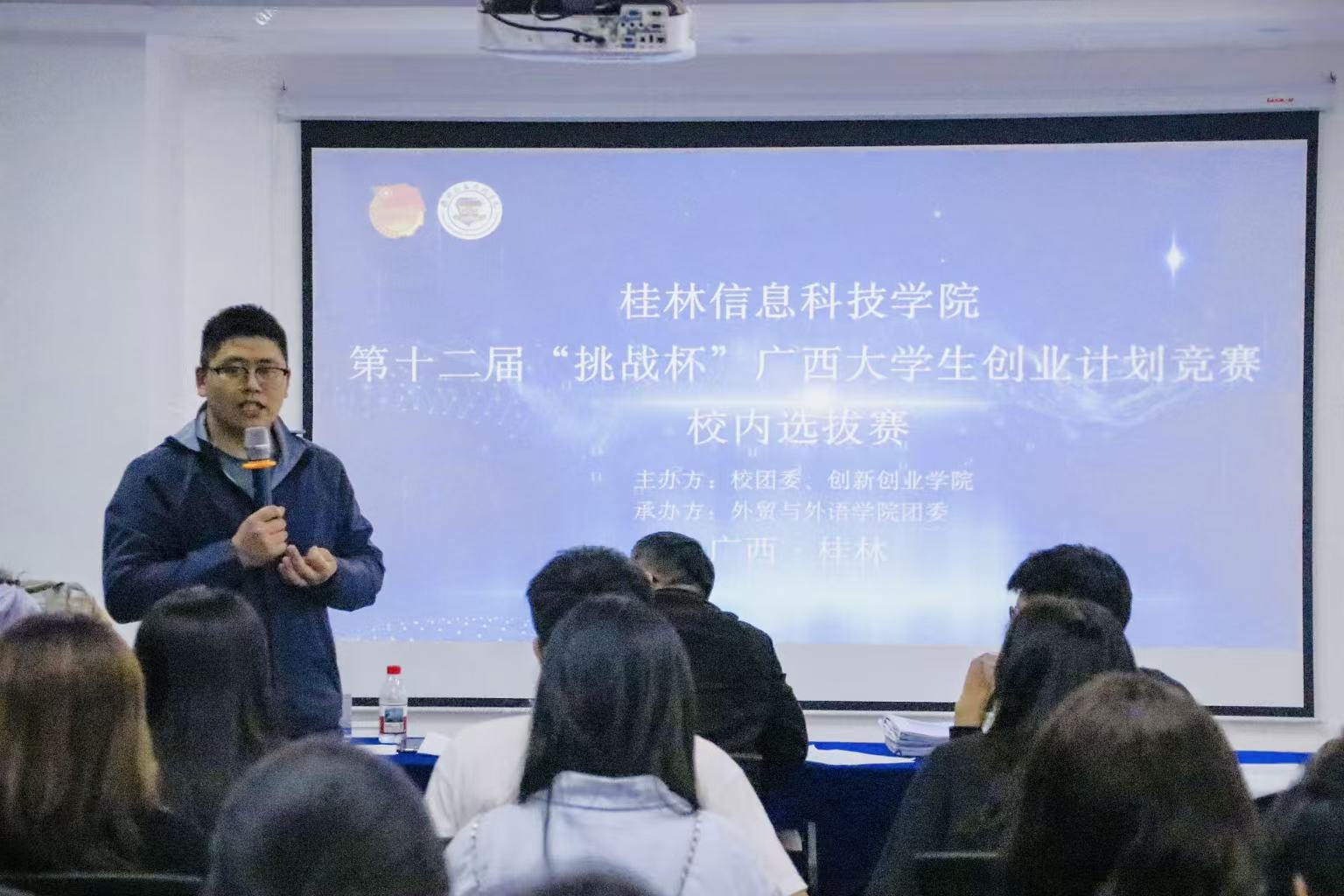 4月8日下午,beat365第十二届“挑战杯”广西大学生创业计划竞赛校内选拔赛在学校创新创业学院1楼综合大厅顺利举行。本次比赛由校团委、学校创新创业学院主办,外贸与外语学院团委承办,经过前期的网络评审,最终选出了15支优秀队伍参加线下路演。桂林医科大学宣传部副部长金罗成老师、学校党委教师工作部部长周文彬老师、学校团委书记周阳霖老师、学校创新创业学院副院长黄鹏老师、学校学生发展与服务中心副主任肖玲老师担任本次比赛的现场评委。