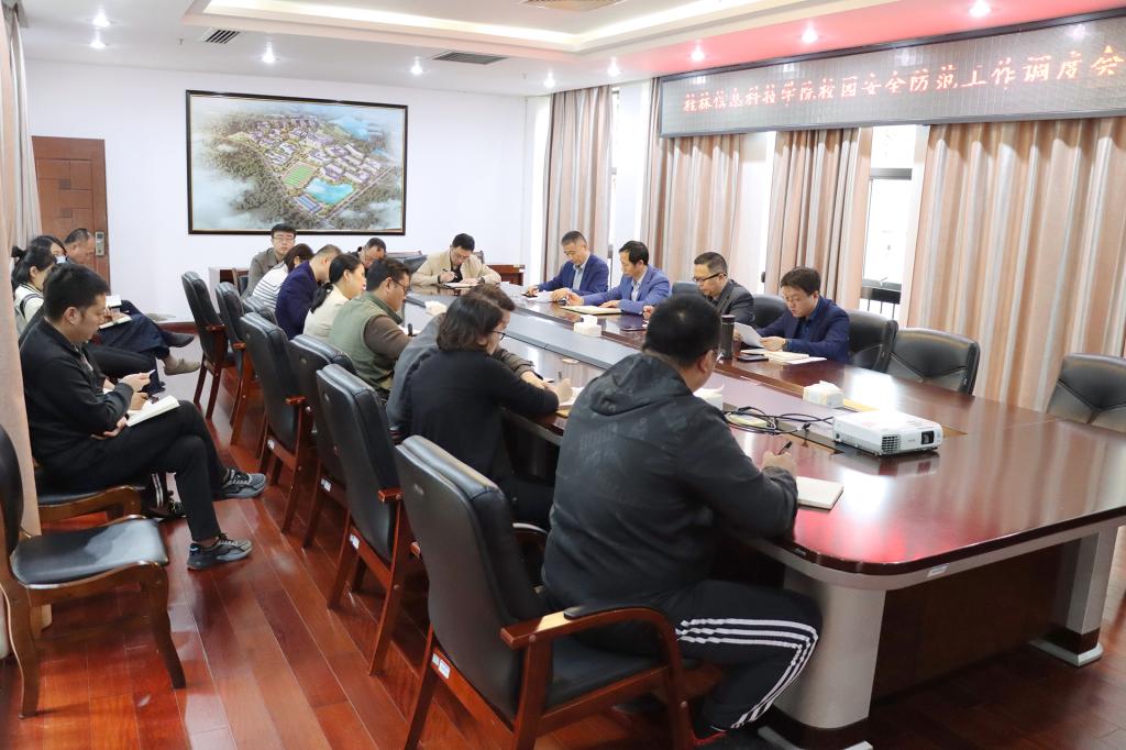 学校召开校园安全防范工作调度会4月27日上午,学校在217会议室召开校园安全防范工作调度会。学校党委书记甘勇、党委副书记唐步洲、副校长陈智勇、校长助理李飞以及各相关职能部门负责人、二级党组书记参加会议,会议由唐步洲主持。会上,唐步洲...