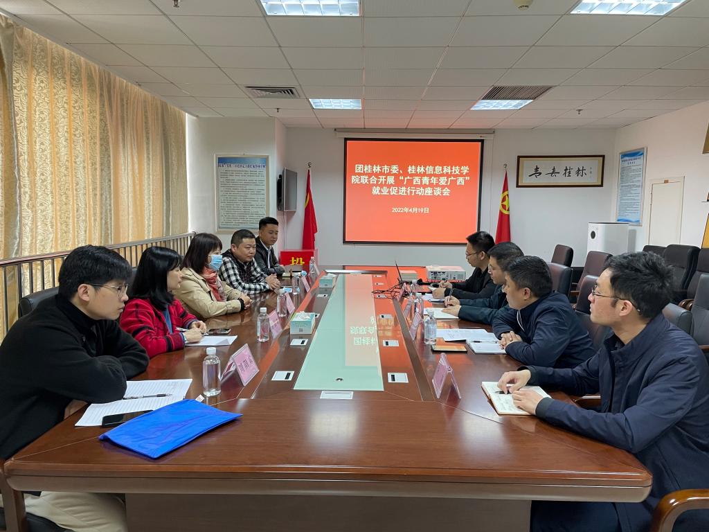 学校赴共青团桂林市委开展“广西青年爱广西”就业促进行动座谈会4月19日,学校招生就业处、学生工作部一行5人到共青团桂林市委开展“广西青年爱广西”就业促进行动座谈会,共青团桂林市委副书记蒋杨桦及相关部门负责人参加了会议。座谈会上,招生就业处处长陈丽军首先对共青团...