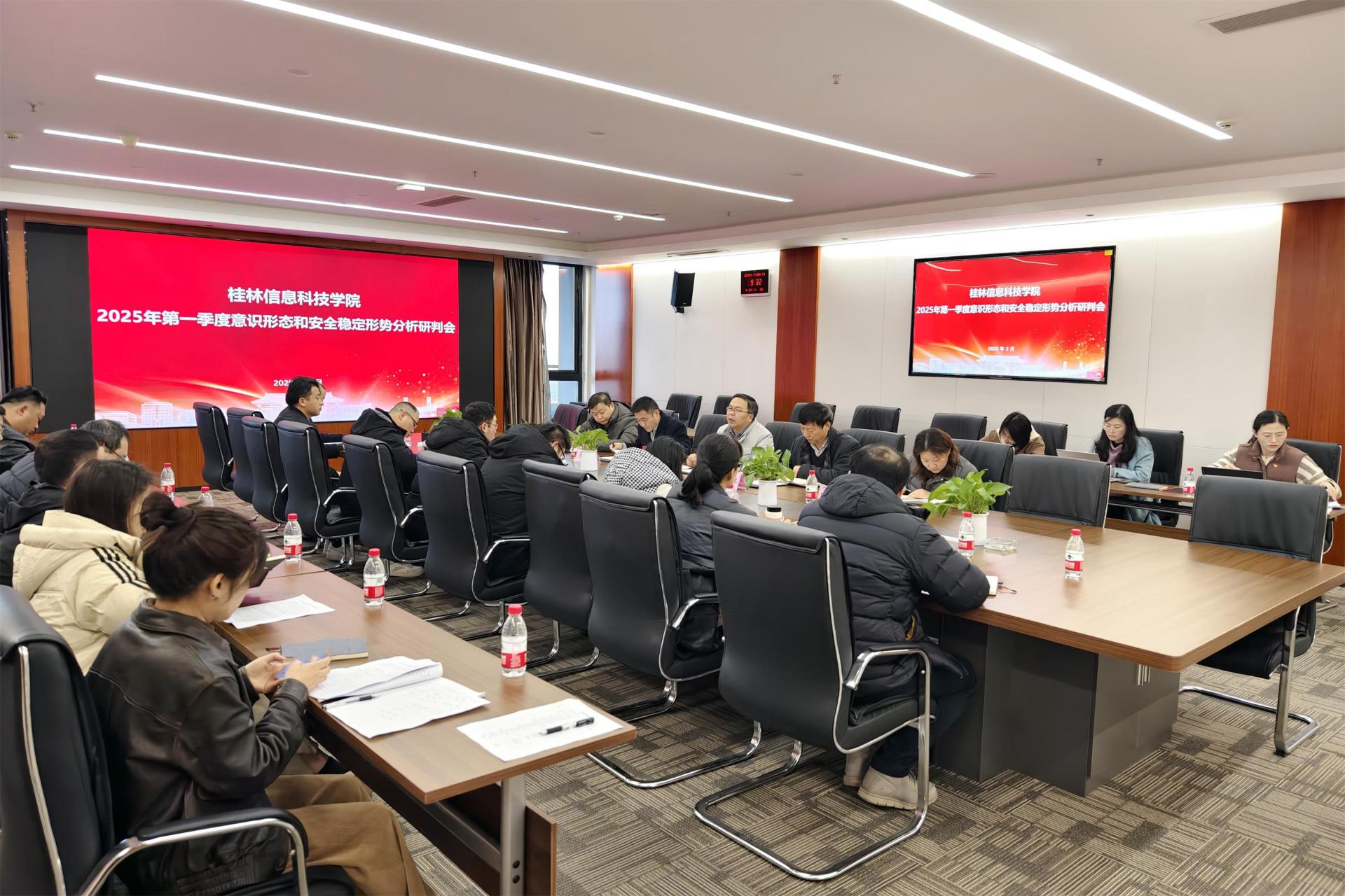 学校召开2025年第一季度意识形态和安全稳定形势分析研判会2月28日上午,学校在知行楼810会议室召开2025年第一季度意识形态和安全稳定形势分析研判会。学校意识形态工作领导小组成员参加会议。会议由学校党委书记甘勇主持。会上,学校党委副书记李飞传达了上级有关文件精...