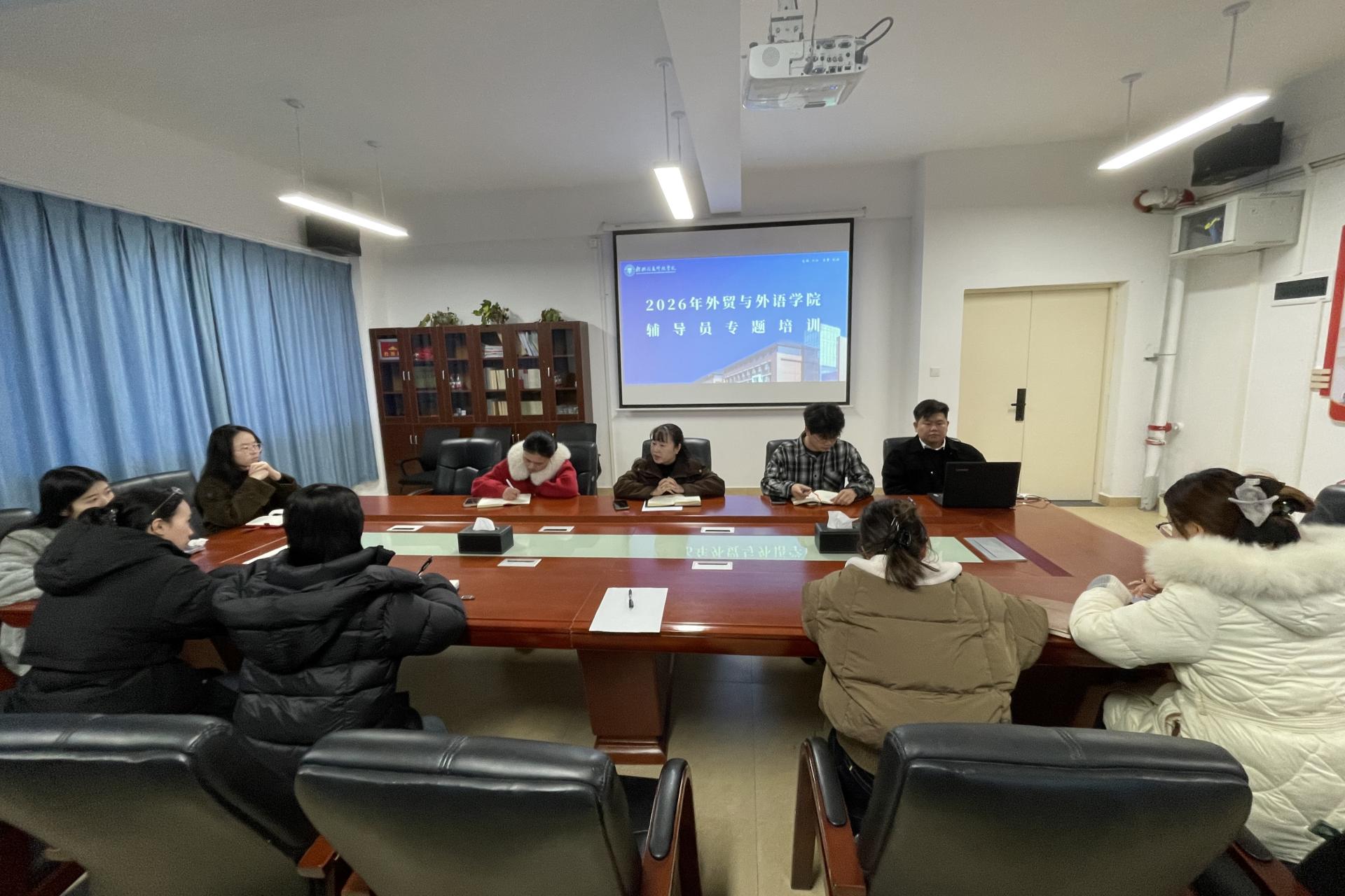 外贸与外语学院开展2026年第一期辅导员专题培训为落实立德树人根本任务,锻造政治强、业务精、纪律严、作风正的新时代辅导员队伍,1月13日,外贸与外语学院在文汇楼L710会议室召开第一期辅导员专题培训。学院党委书记廖星男主持会议,学生工作办公室全体成员...
