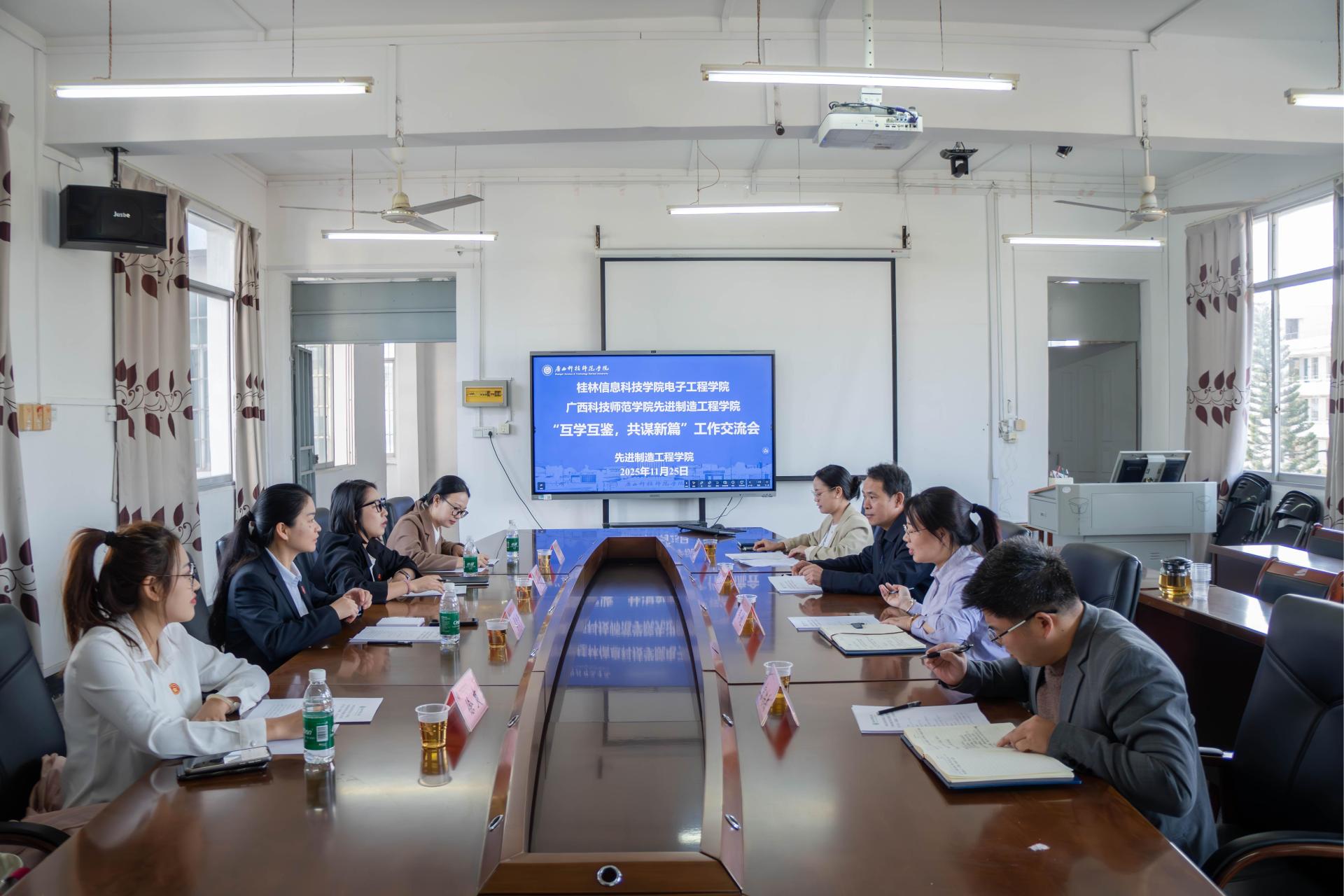 电子工程学院党委书记带队赴广西科技师范学院交流学习为学习借鉴其他高校先进工作经验,进一步提升党建、学生管理与宣传工作水平,11月25日,电子工程学院党委书记梁自珍带领学院辅导员代表一行4人,前往广西科技师范学院先进制造工程学院进行对口交流。当日下午,交...