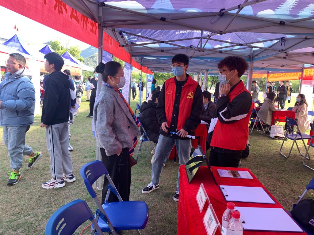 双选会前,志愿者们提前布置好场地设施,搭帐篷、搬桌子等都能看“信息青年”及“红色种子”忙碌的身影。随后,各志愿者热情的迎接企业的到来,为各自对接的企业发宣传单、挂海报、准备宣讲会等,受到企业一致好评。