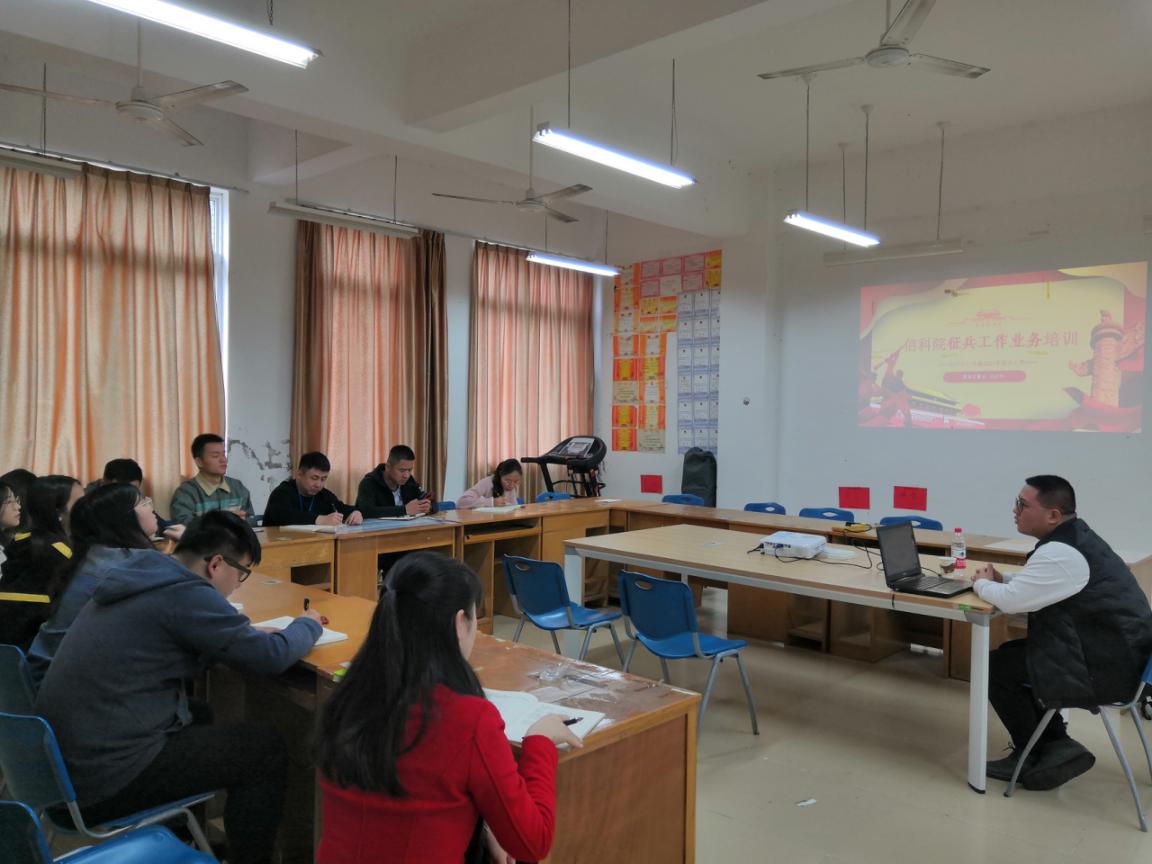 为积极响应学院征兵工作号召,4月13日上午,信息工程系在31305开展征兵工作培训,会议由学院征兵办公室刘清华老师主讲,全体辅导员参加。