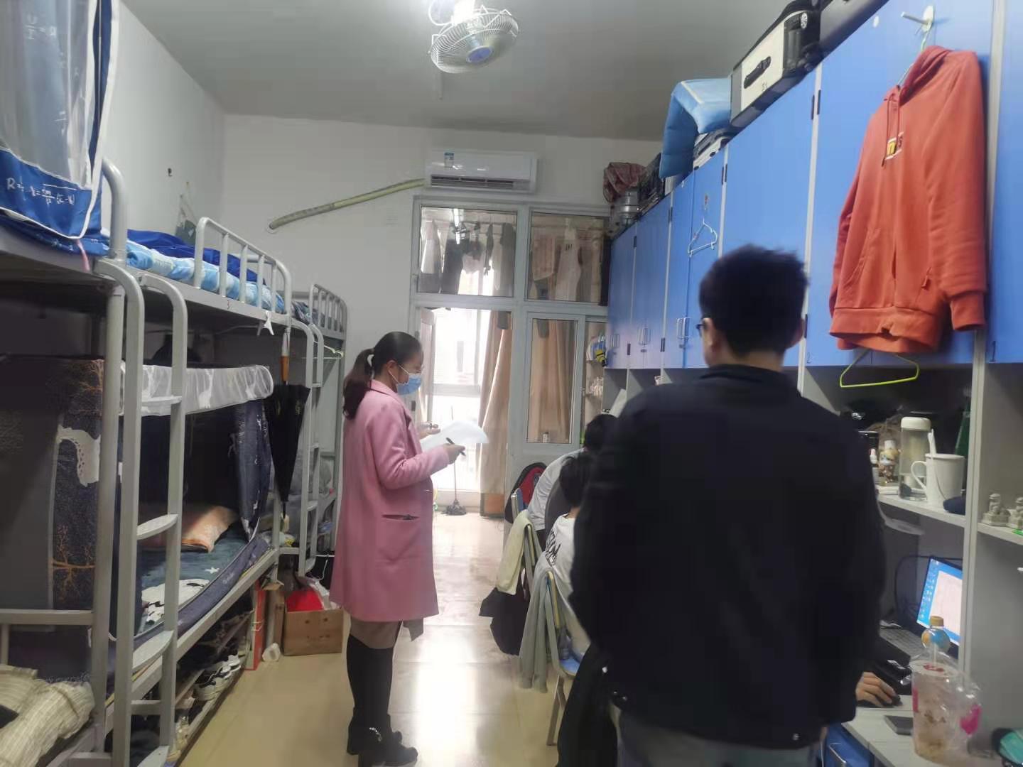 在检查过程中,辅导员详细了解学生的学习情况、补考考试复习情况等,提醒同学们要做好疫情防控常态化下的自我管理和个人防护,养成良好的生活卫生习惯,学生宿舍要做到常通风、及时清理垃圾等。辅导员还与公寓生活指导老师沟通,了解学生宿舍存在的相关问题,共同努力营造良好的宿舍卫生环境。