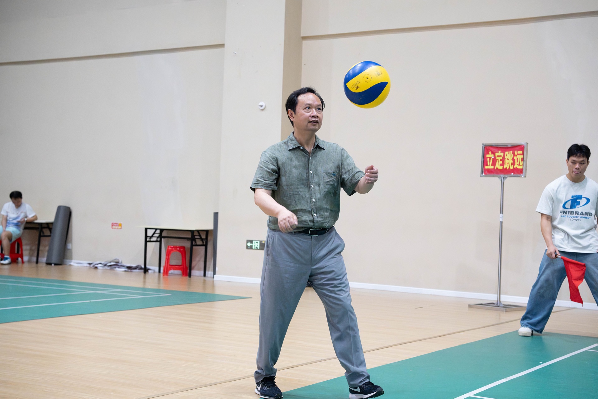 随着裁判的一声哨响,比赛正式开始。罗欣董事长作为队员加入班级战队,发球、传球动作娴熟流畅,与同学们配合默契,在球场上灵活进攻与防守。其拼搏的姿态感染着在场的每一位同学,以身作则诠释着积极向上的体育精神 。场下,观众们的加油助威声接连不断,热烈的掌声汇聚成一股青春的力量,将现场气氛推向高潮。经过多轮激烈的比拼,由罗欣董事长带领的师生联队凭借顽强的斗志和出色的球技,最终夺得了冠军。