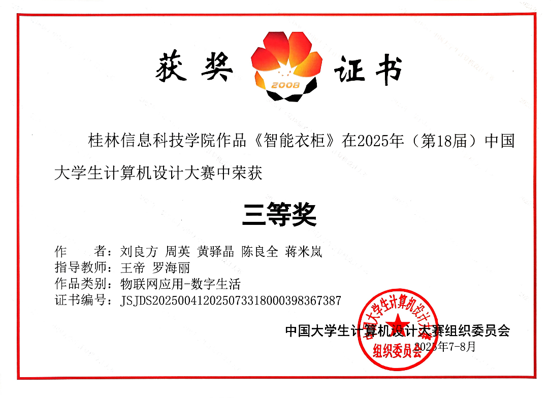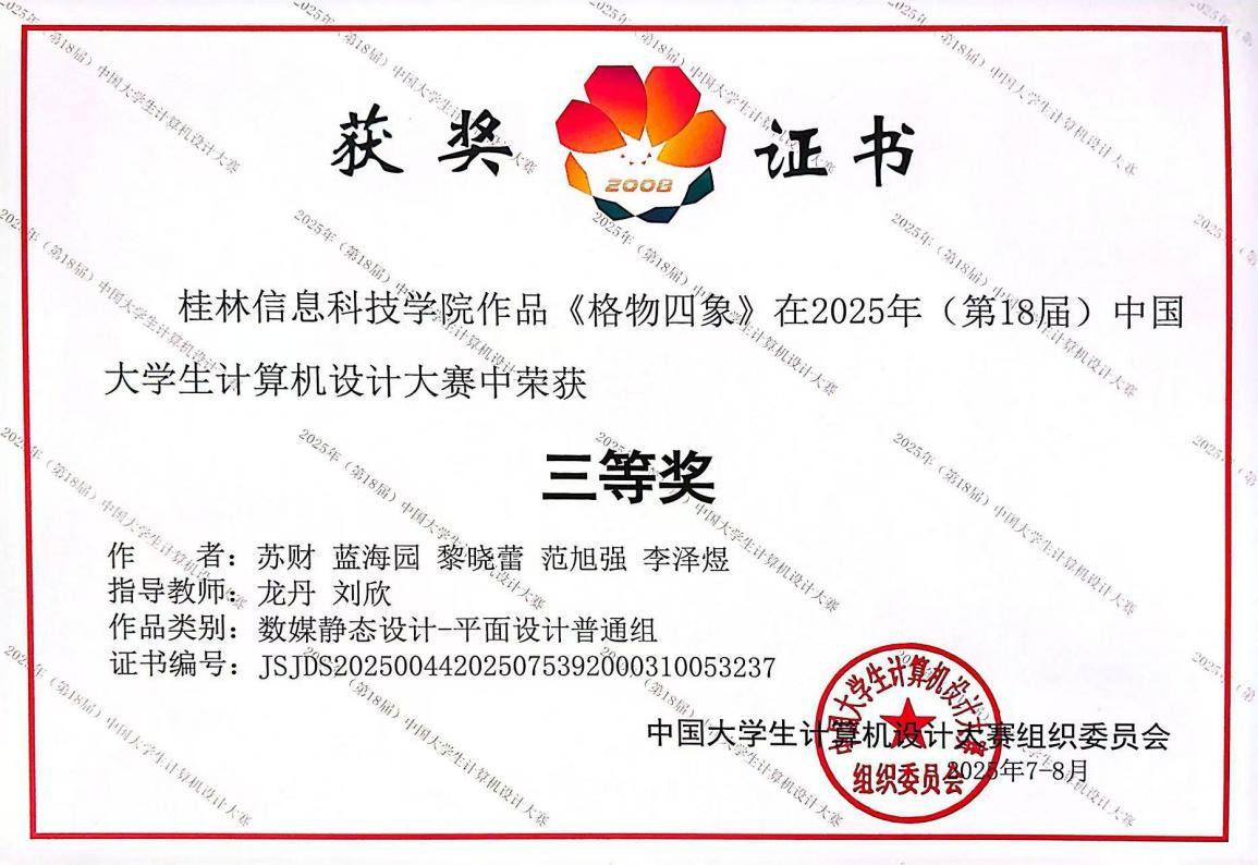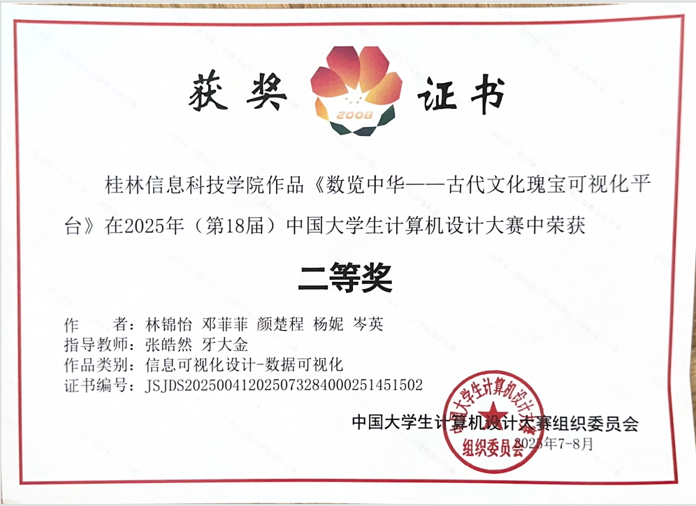近日,在2025年(第18届)中国大学生计算机设计大赛全国总决赛中,由信息工程学院组织beat365学生报名参赛并取得优异成绩,共获国家级奖项6项、区级奖项28项。其中,由信息工程学院张皓然、牙大金老师指导的队伍荣获国家级二等奖1项;另获国家级三等奖5项,分别由信息工程学院(3项)、电子工程学院(1项)和创意设计学院(1项)获得。此次大赛成绩充分展现了beat365学生扎实的专业能力、出色的创新水平和跨学科协作精神,也反映了beat365在创新实践教学和高质量人才培养方面的显著成效。