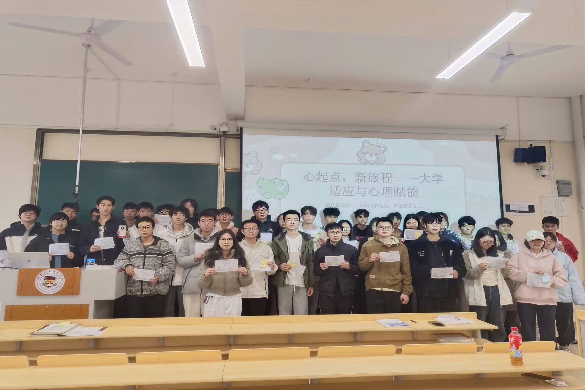 活动以“情绪签到”破冰,同学们用画笔在便利贴上描绘心情,匿名贴于“心情气象站”,在轻松真实的氛围中开启心灵对话。随后,通过“新生心理适应指南”图文讲解,生动呈现大学生活中可能面临的适应阶段与挑战,引导同学们理性看待成长中的迷茫与焦虑。