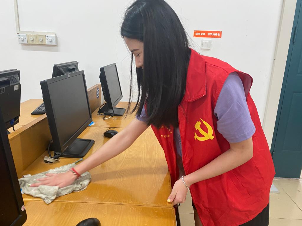 活动中,红色马甲和蓝色马甲争相辉映,擦拭电脑、清扫教室、摆放桌椅,分工明确,眼里充满干劲,将实验室打扫的干干净净。此次志愿活动进一步体现了我院学子的奉献精神,获得了老师及同学的一致好评。