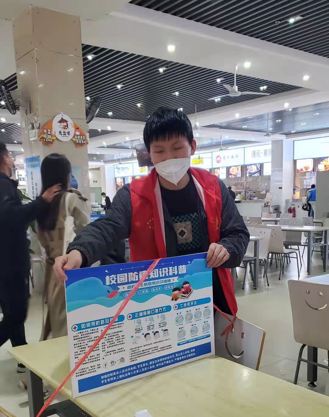 为积极响应学校疫情防控工作,近日,信息工程学院第二学生党支部特筹建党员志愿者队伍分批次在食堂进行疫情防控工作。