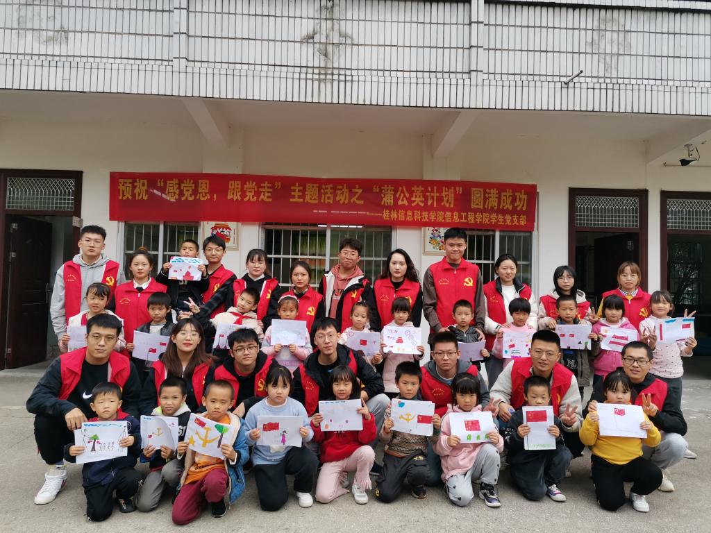 11月12日,信息工程学院第一、第二、第三学生党支部以“感党恩,跟党走”为主题,前往灵川县涧沙小学教育点开展了“蒲公英计划”党日活动。