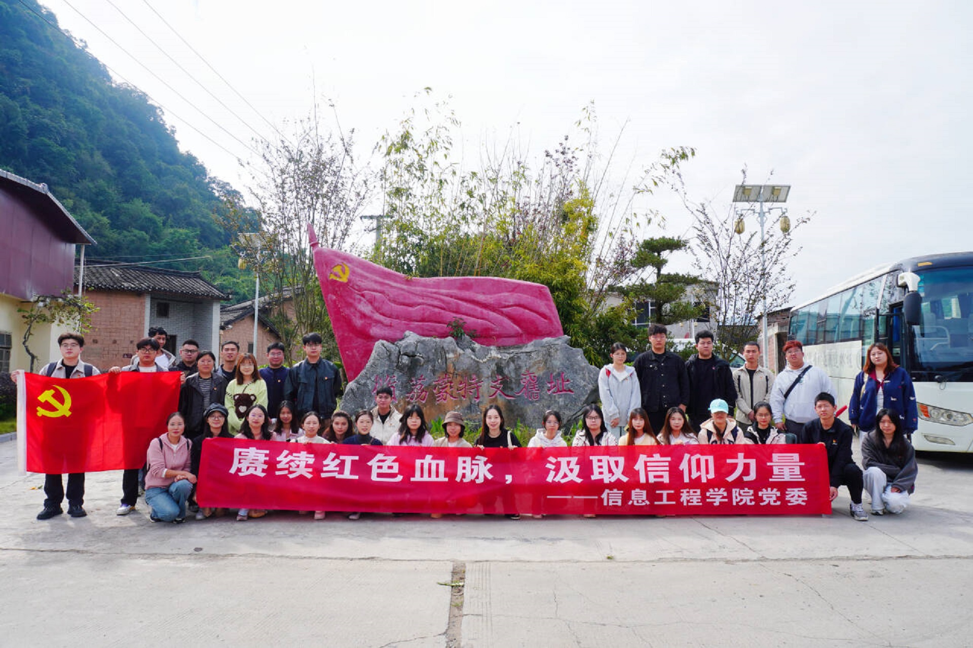 为深入学习贯彻习近平新时代中国特色社会主义思想,传承红色基因,弘扬革命精神,11月14日,信息工程学院党委组织师生党员前往荔浦市杜莫镇张村革命纪念馆,开展“赓续红色血脉,汲取信仰力量”主题党日活动。