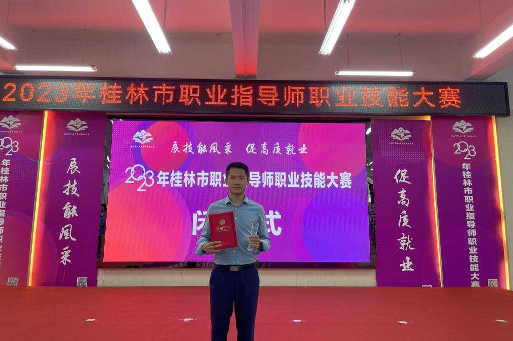 为深入学习贯彻党的二十大精神,贯彻落实习近平总书记关于新时期产业工人队伍建设改革和技能人才工作重要指示精神,近日,2023年桂林市职业指导师职业技能大赛在广西师范大学育才校区成功举办,信息工程学院覃伟峰老师在本次比赛发挥出色,获院校组二等奖(总排名第三)。