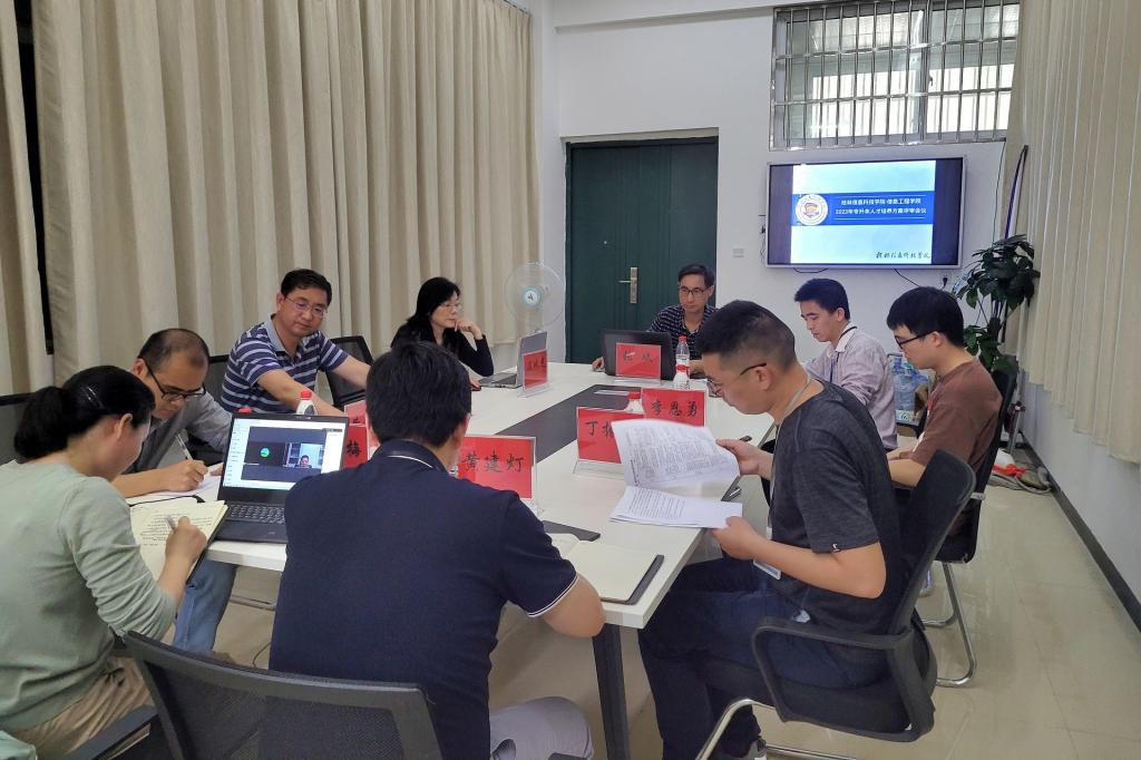 为了确保我院专升本学生人才培养质量,规范专升本学生的培养过程,4月20日,信息工程学院于52205开展2023年专升本人才培养方案评审答辩会议。会议由信息工程学院院长黄建灯主持,桂林电子科技大学赵利教授、黄文明教授、温佩芝教授、张斌副教授及我院各教研室主任参加,本次会议特地邀请到深圳市讯方技术股份有限公司技术总监丁振强、深圳市品为科技有限公司总经理李恩勇运用腾讯会议线上参与。