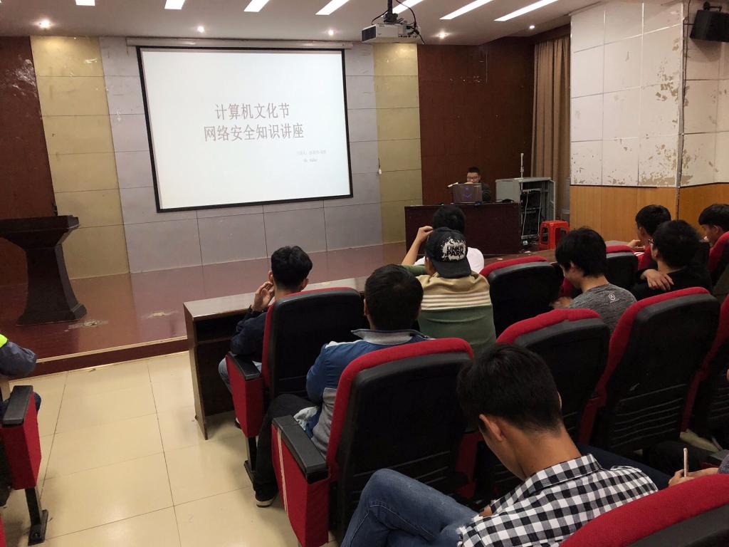 11月10日,我系在21201报告厅开展网络安全知识讲座。本次活动由网络安全协会主要学生干部朱凯同学主讲。