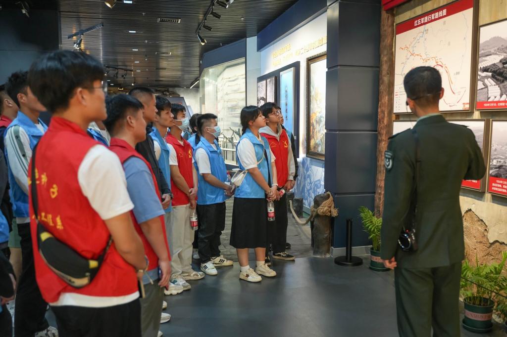 活动中,学生干部跟随讲解员共同回忆红军长征,通过布展厅内的照片、影像,一幕幕揭开长征的序幕。馆内模拟战争场景的音效,使同学们身临其境。学生干部在感受红军精神的同时明白了应珍惜先辈流血牺牲换来的幸福,懂得了应肩负起振兴中华民族的历史使命。