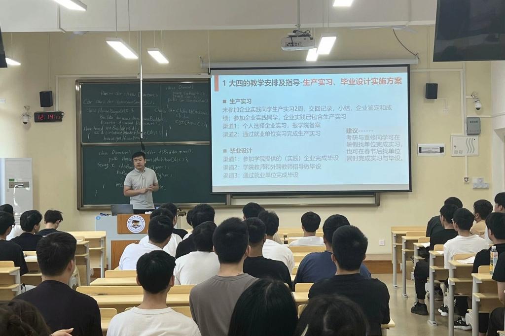 近日,信息工程学院召开了2021级校企联合培养动员大会。本次会议由我院2021级辅导员组织,学院各教研室主任主讲,2021级全体学生分专业开展。