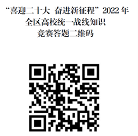 本次比赛为线上比赛。仅支持微信手机端登录进行,扫描“喜迎二十大奋进新征程”2022年全区高校统一战线知识竞赛二维码,正确填写姓名、手机号码、学校等相关信息,进行答题。